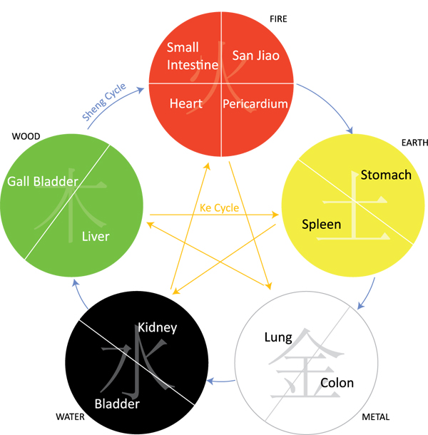 In Chinese medicine, the fire element is generally associated with the Heart, but there are actually 4 organs/channels associated with the fire element. All the other elements – earth, metal, water and wood – have two channels, one yin and one yang, but in the fire element it is doubled.